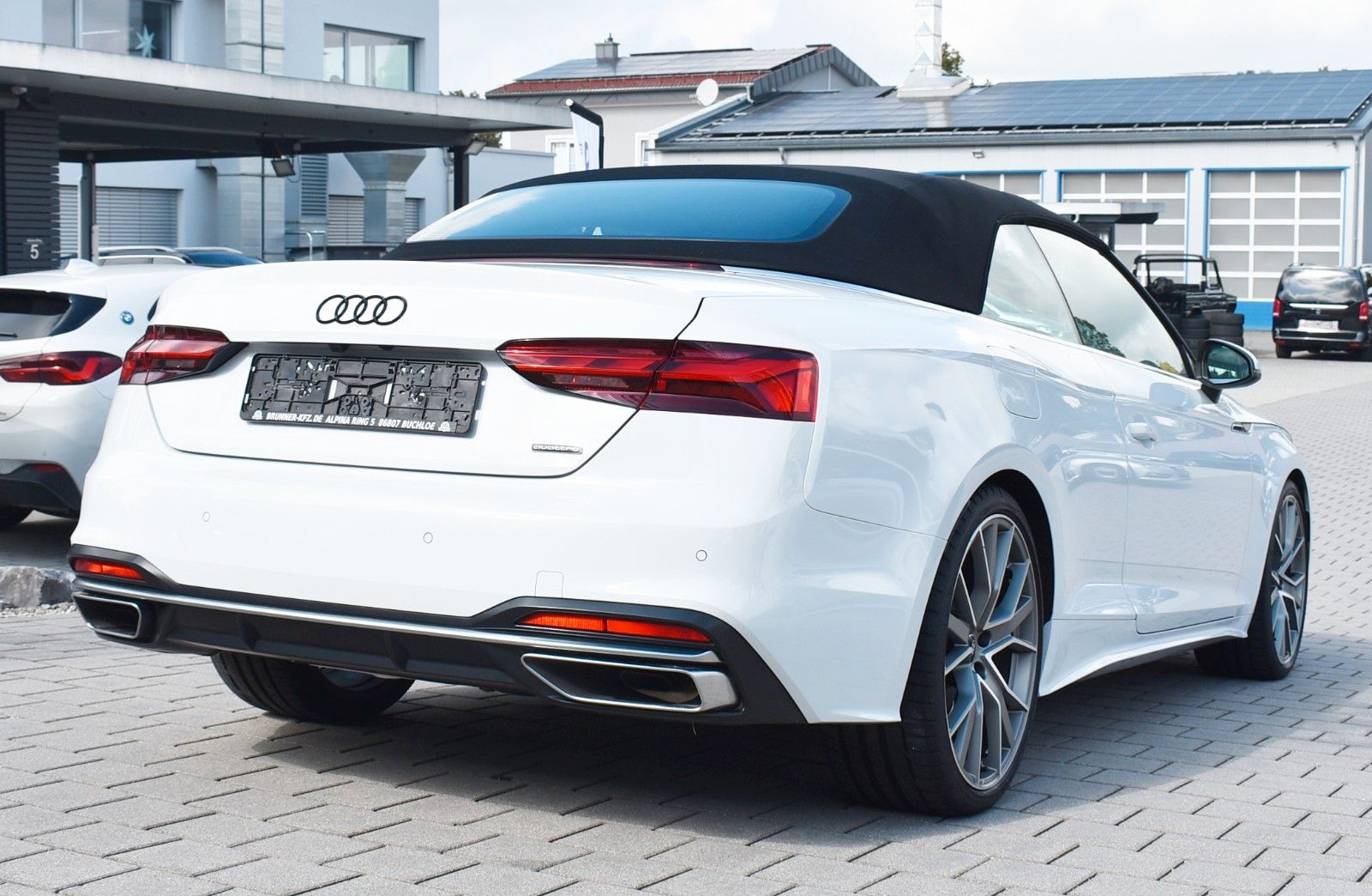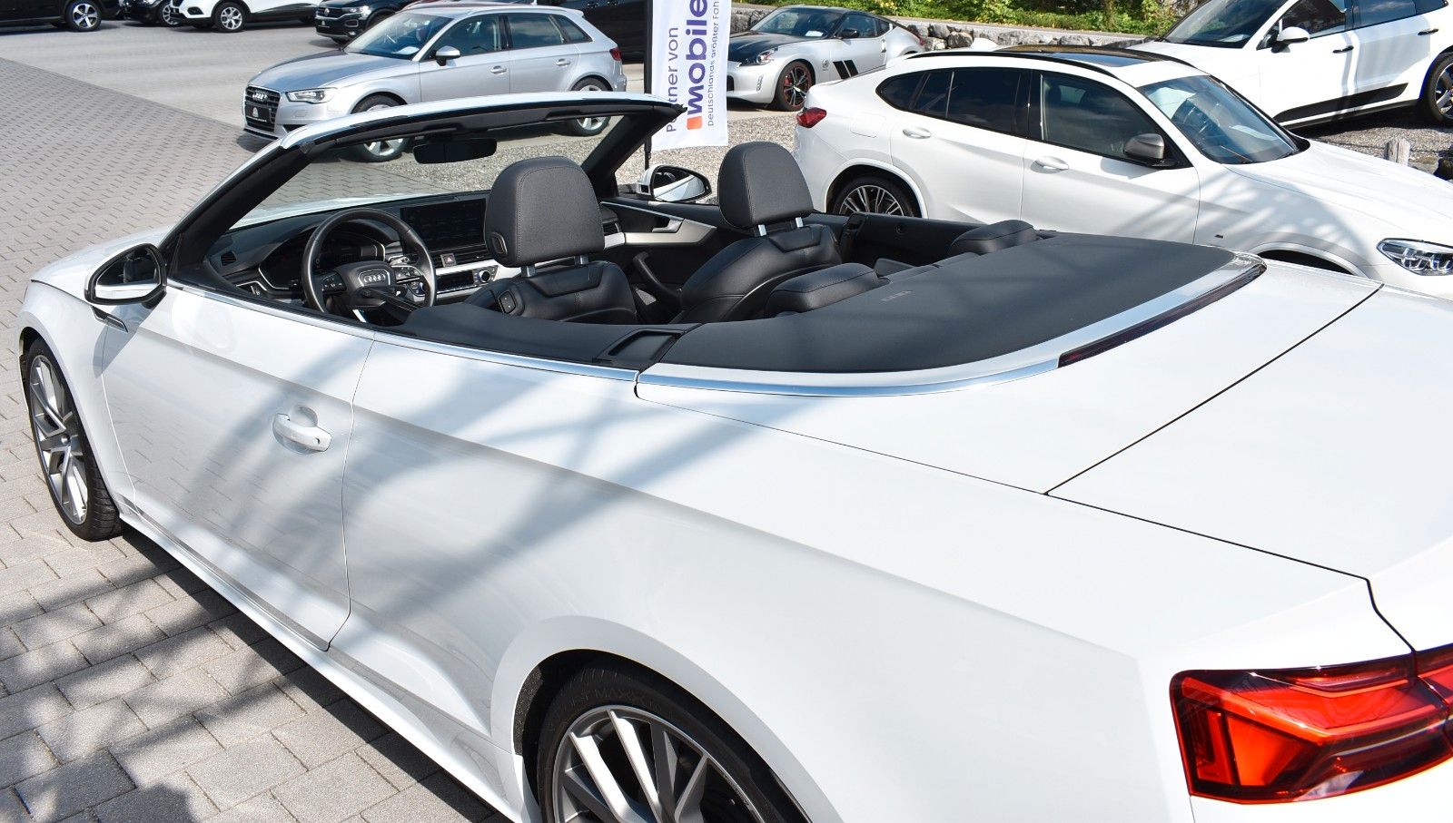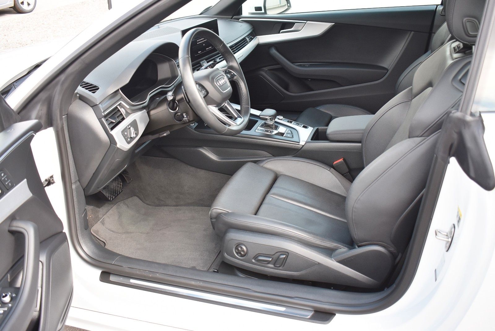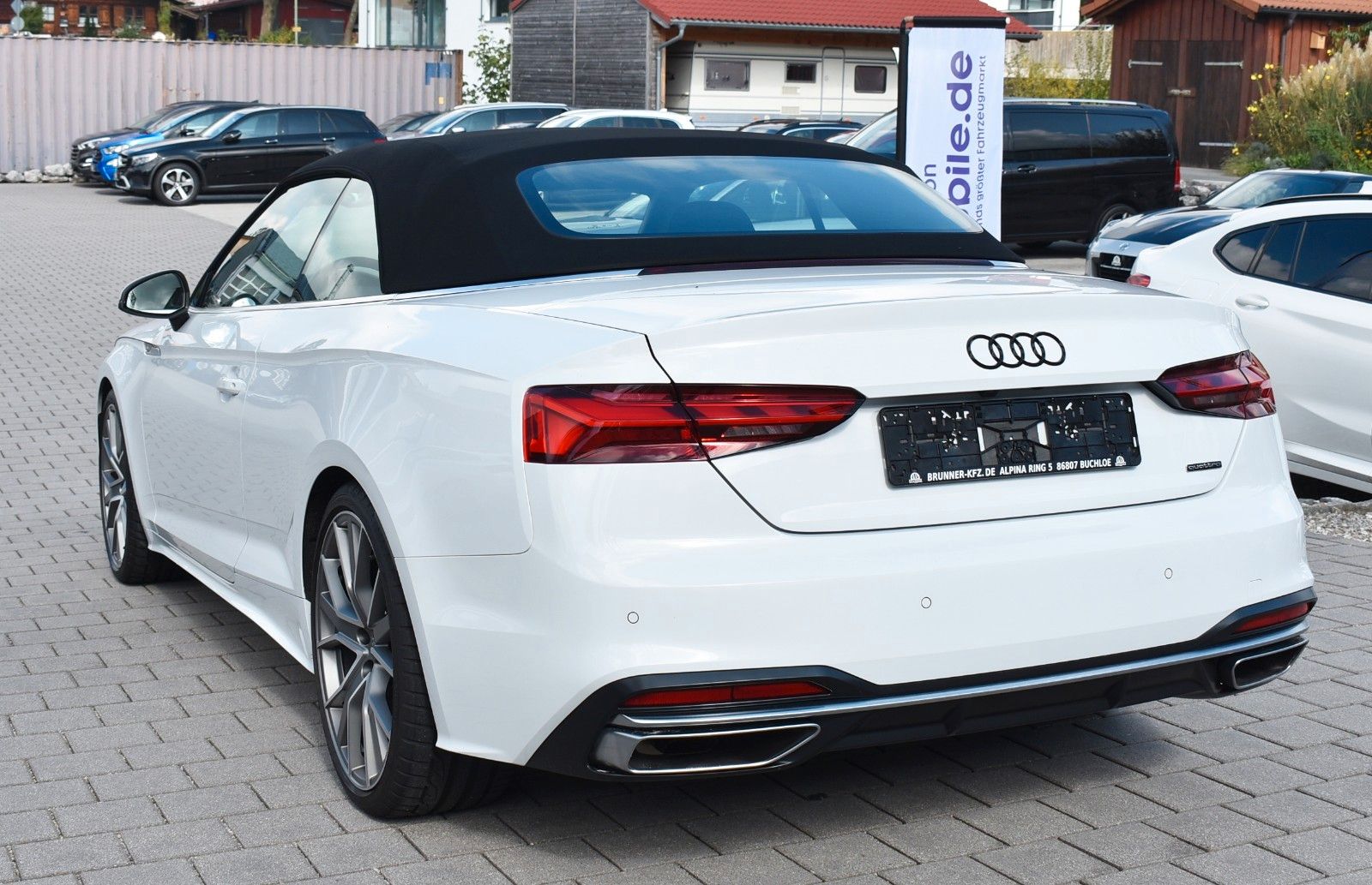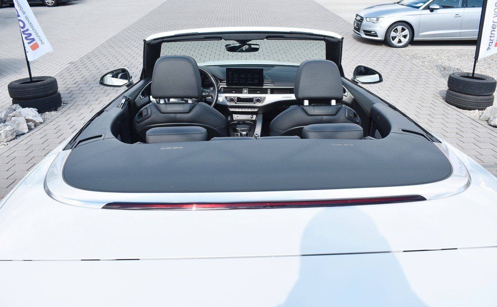 Lieber Interessent, wir bieten Ihnen hier einen sehr gepflegten Audi A4 Cabriolet zum Kauf an. Das Fahrzeug ist selbstverständlich unfallfrei und Scheckheft gepflegt. Die Kilometerleistung ist natürlich Original. Nichtraucherfahrzeug. Gerne erstellen wir Ihnen ein unverbindliches Finanzierungsangebot über unsere Partnerbank. Ihren Gebrauchten können Sie sorglos bei uns Inzahlung geben. Schöne Grüße aus Buchloe Alex & Robert. Sonderausstattung: Ablage- und Gepäckraum-Paket, Assistenz-Paket Fahren, Assistenz-Paket Parken, Audi connect Schlüssel, Außenspiegel elektr. verstell-, heiz- und anklappbar, mit Abblendautomatik und Memory, Fahrassistenz-System: Anfahr-Assistent (hold assist), Fondsitzanlage mit Ablageschale (2 Sitzplätze), Fzg. ohne Smartphone Application Interface, Innenausstattung: Dekoreinlagen Aluminium Ellipse silber, Isofix-Aufnahmen für Kindersitz an Beifahrersitz, Kombiinstrument digital (virtual cockpit plus), Komfort-Klimaautomatik 3-Zonen, Komfort-Paket Sitze, Komfort-Paket Spiegel, Kontur / Ambientebeleuchtungs-Paket (plus), Kopfraumheizung, LM-Felgen 9x20 (5-V-Speichen, Stern-Design, Titanoptik matt, glanzgedreht), Matrix-LED-Scheinwerfer, Metallic-Lackierung, Navigations-Paket, Sitzbelüftung vorn, Sitze vorn elektr. verstellbar (links mit Memory), Sound-System DSP / Audi Sound-System, Sportsitze vorn
