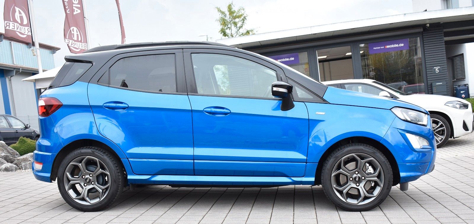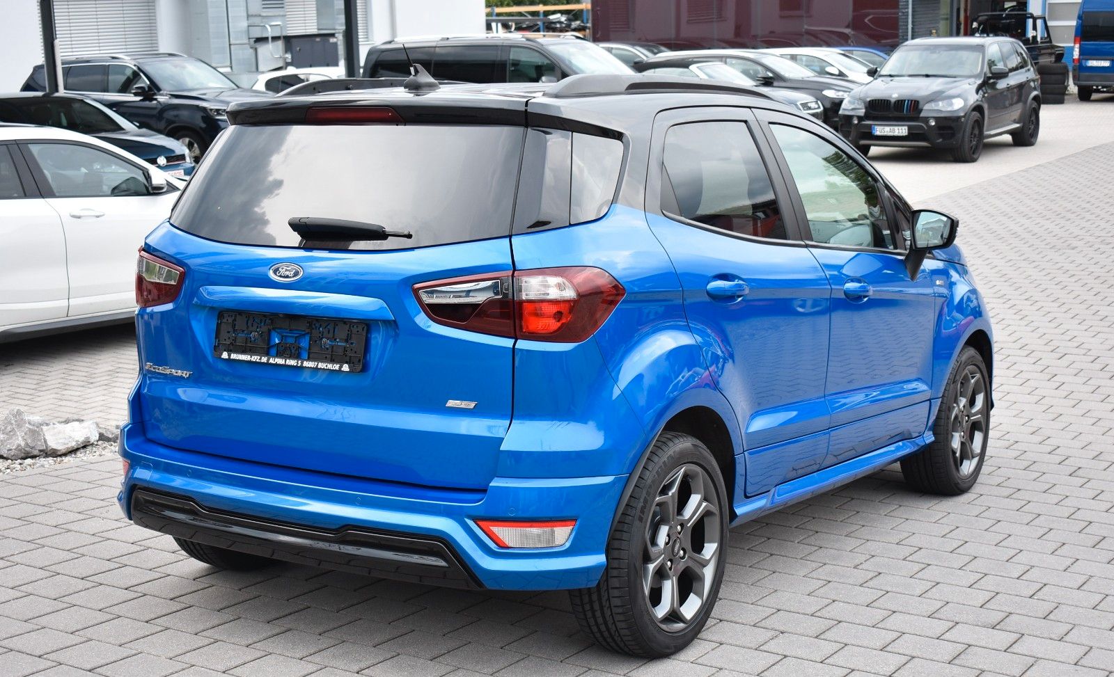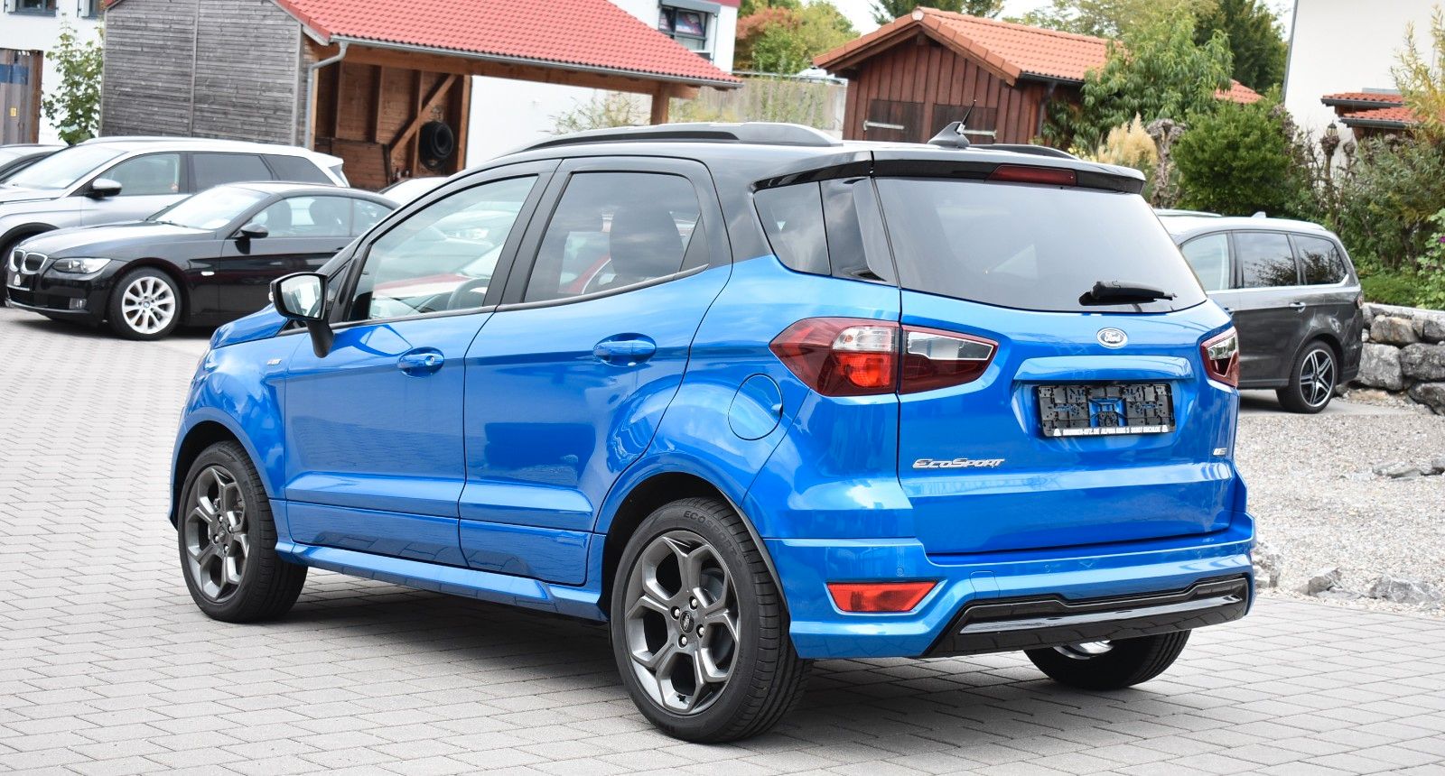 Lieber Interessent, wir bieten Ihnen hier einen gepflegten Ford Ecosport ST Line zum Kauf an. Das Fahrzeug befindet sich wirklich in einem gepflegten und sehr ordentlichen Zustand. Inspektionen wurden regelmäßig eingehalten. Das rechte Seitenteil wurde mal nachlackiert. Die hintere Türe sowie der Stoßfänger ersetzt. Dies wurde alles professionell erledigt. Der Grund war dem Vorbesitzer unbekannt. Sie bekommen dieses Fahrzeug selbstverständlich mit neuer HU und 1 Jahr Gebrauchtwagengarantie. Gerne erstellen wir Ihnen ein unverbindliches Finanzierungsangebot über unsere Partnerbank. Ihren Gebrauchten können Sie sorglos bei uns Inzahlung geben. Schöne Grüße aus Buchloe. Sonderausstattung: Dach andersfarbig lackiert / Kontrastfarbe, Fahrassistenz-Paket, Sitzbezug / Polsterung: Teilleder
