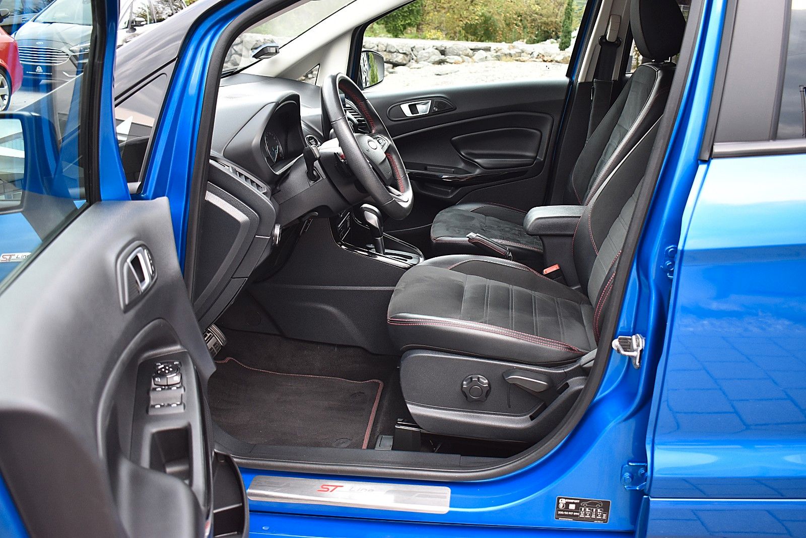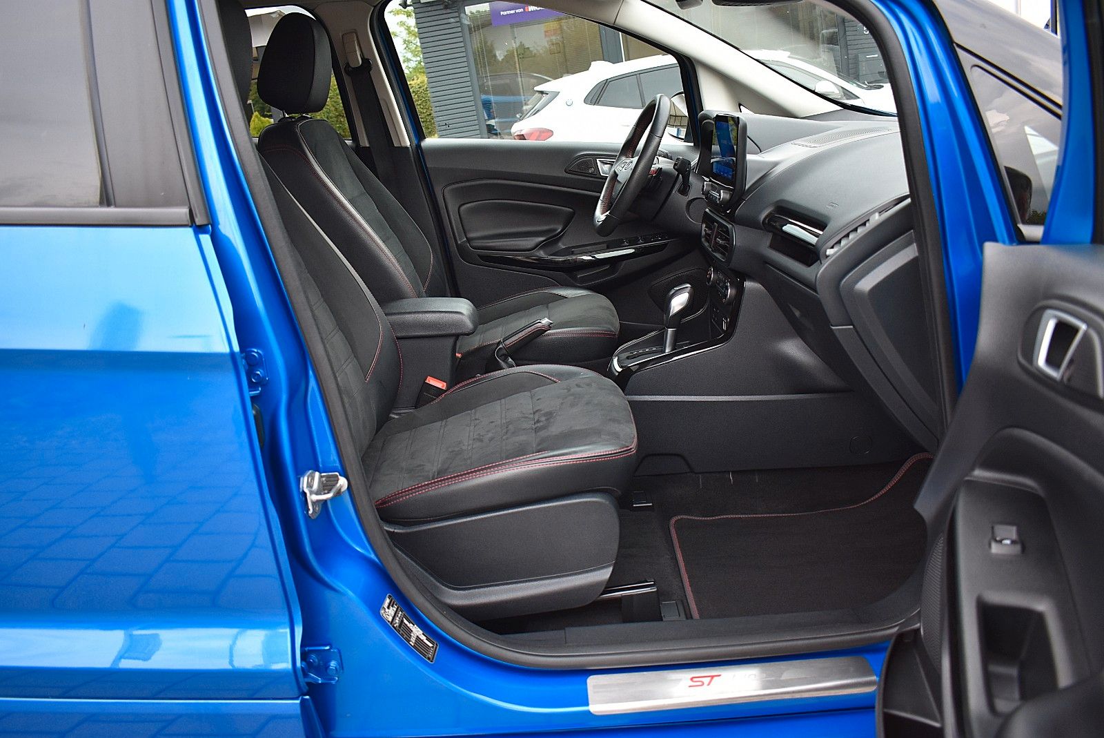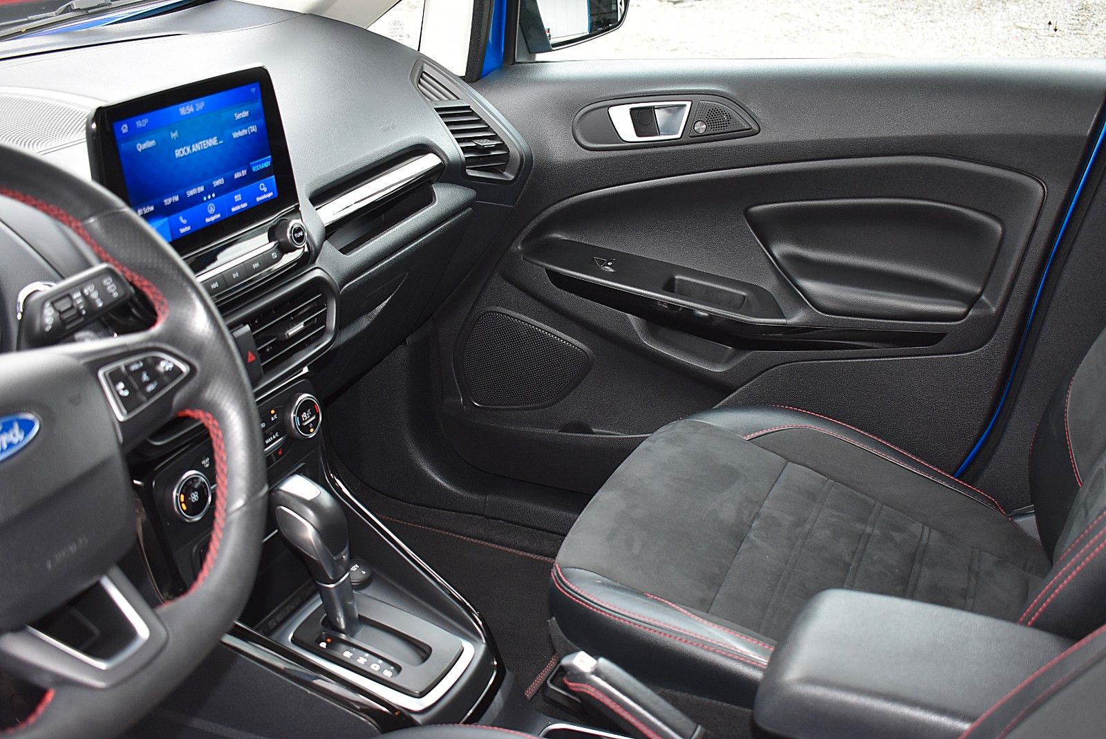 Lieber Interessent, wir bieten Ihnen hier einen gepflegten Ford Ecosport ST Line zum Kauf an. Das Fahrzeug befindet sich wirklich in einem gepflegten und sehr ordentlichen Zustand. Inspektionen wurden regelmäßig eingehalten. Das rechte Seitenteil wurde mal nachlackiert. Die hintere Türe sowie der Stoßfänger ersetzt. Dies wurde alles professionell erledigt. Der Grund war dem Vorbesitzer unbekannt. Sie bekommen dieses Fahrzeug selbstverständlich mit neuer HU und 1 Jahr Gebrauchtwagengarantie. Gerne erstellen wir Ihnen ein unverbindliches Finanzierungsangebot über unsere Partnerbank. Ihren Gebrauchten können Sie sorglos bei uns Inzahlung geben. Schöne Grüße aus Buchloe. Sonderausstattung: Dach andersfarbig lackiert / Kontrastfarbe, Fahrassistenz-Paket, Sitzbezug / Polsterung: Teilleder