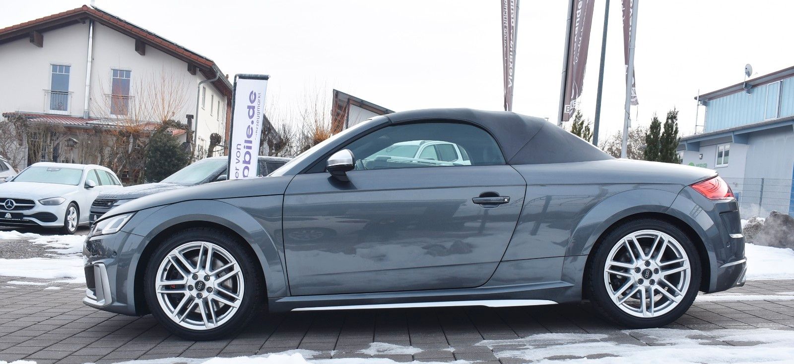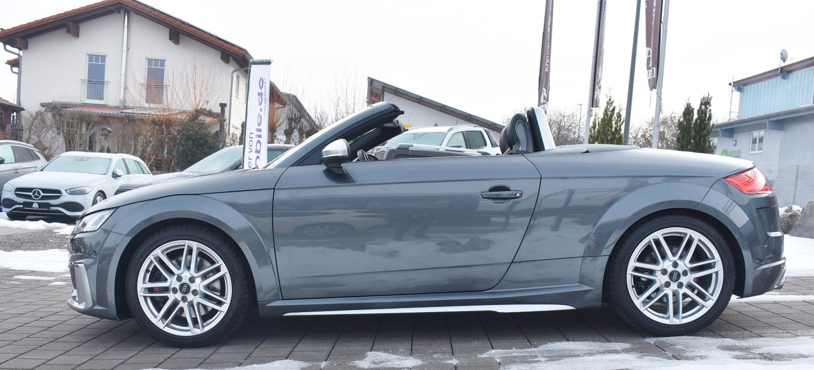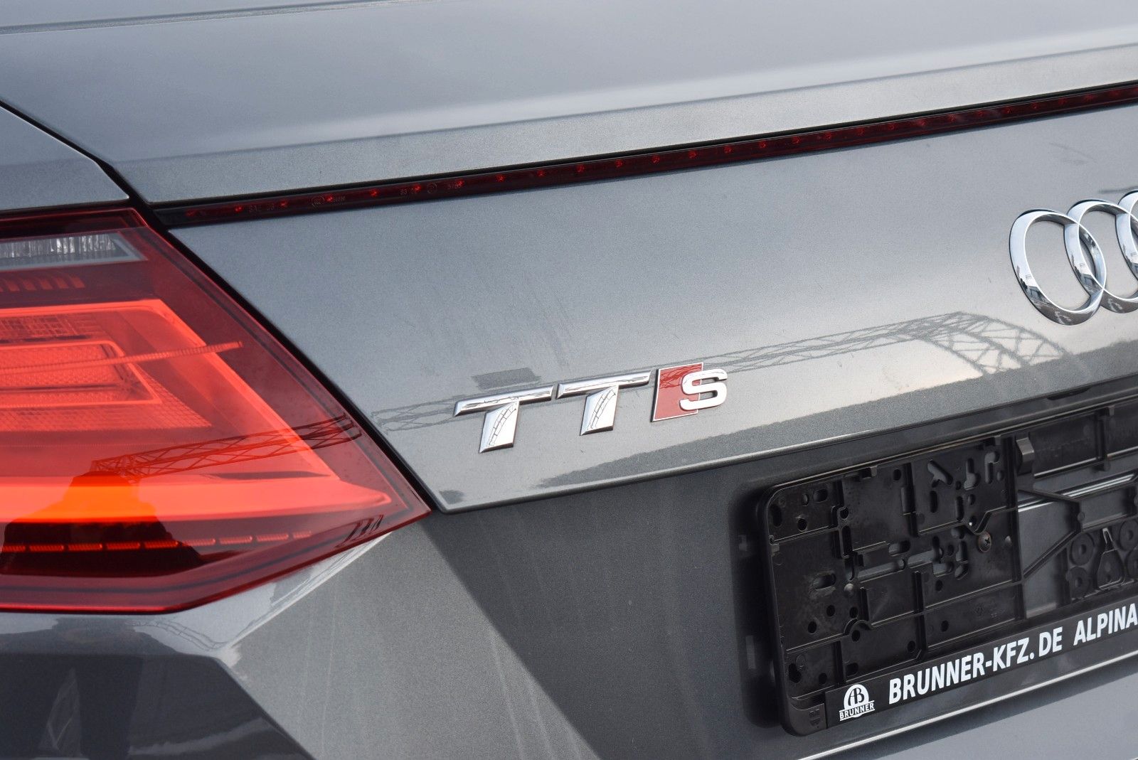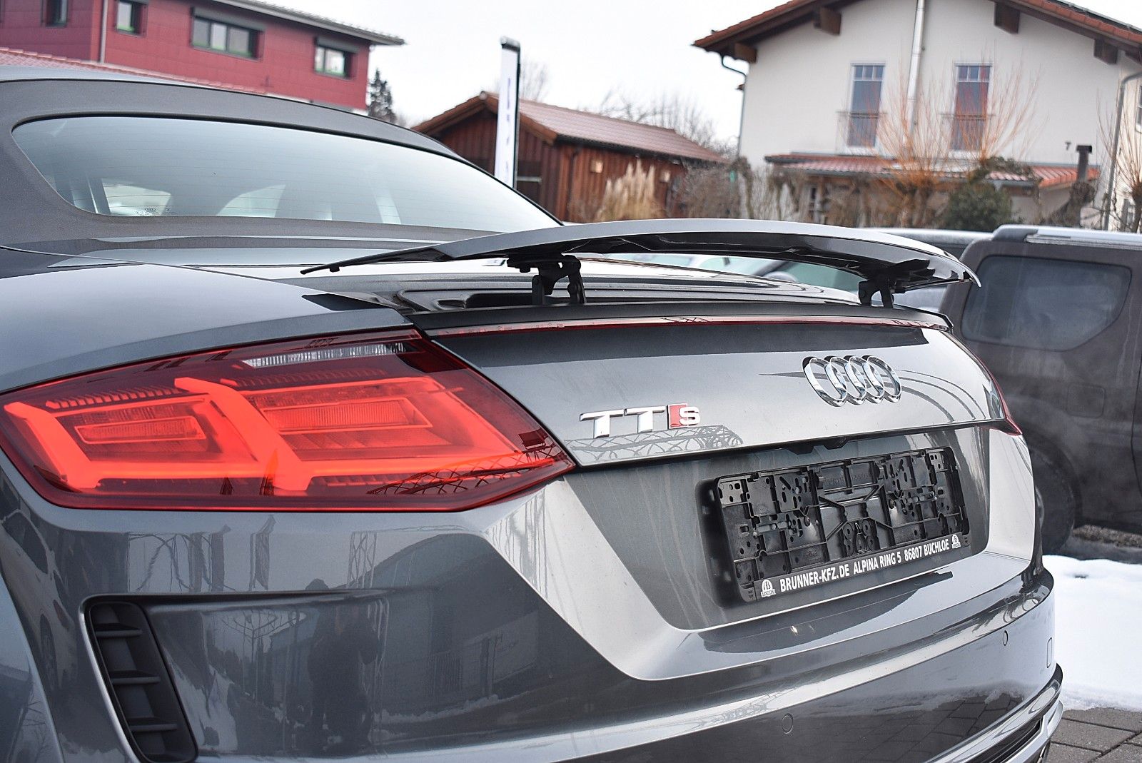 Lieber Interessent, wir bieten Ihnen hier einen gepflegten Audi TTS zum Kauf an. Es handelt sich selbstverständlich um ein deutsches unfallfreies Fahrzeug aus 2. Hand. Inspektionen wurden regelmäßig eingehalten. Ehrliches und schönes Fahrzeug. Auf den Bildern sehen Sie das Fahrzeug mit Winterreifen. Die Original TTS Felgen mit Sommerreifen haben wir natürlich dazu. Gerne erstellen wir Ihnen ein unverbindliches Finanzierungsangebot über unsere Partnerbank. Ihren Gebrauchten können Sie sorglos bei uns Inzahlung geben. Schöne Grüße aus Buchloe Alex & Robert. Sonderausstattung: Ablage- und Gepäckraum-Paket, Audi connect (Internetbasierende Dienste), Ausstattungs-Paket: Technology Selection, Außenspiegel elektr. verstell-, heiz- und anklappbar, mit Abblendautomatik und Bordsteinautomatik, Bluetooth-Freisprecheinrichtung mit Spracherkennung (Audi Phone Box), Fahrassistenz-System: Parklenkassistent mit selektiver Anzeige, Fahrassistenz-System: Spurwechselassistent (Side Assist), Fahrassistenz-System: Verkehrszeichenerkennung, Innenspiegel mit Abblendautomatik, Komfort-Klimaautomatik 2-Zonen, Kopfraumheizung, Leder-Paket erweitert, Licht-Paket, LM-Felgen 9x19 (5-Arm, Blade-Design, Titanoptik matt, glanzgedreht), Matrix-LED-Scheinwerfer, Perleffekt-Lackierung, Radioempfang digital (DAB), Rückfahrkamera, Sitze vorn elektr. verstellbar, Sound-System Bang & Olufsen