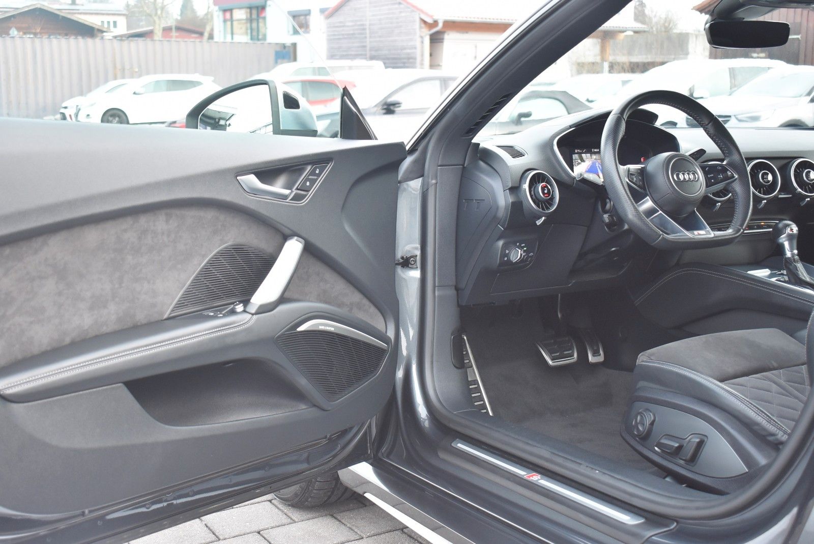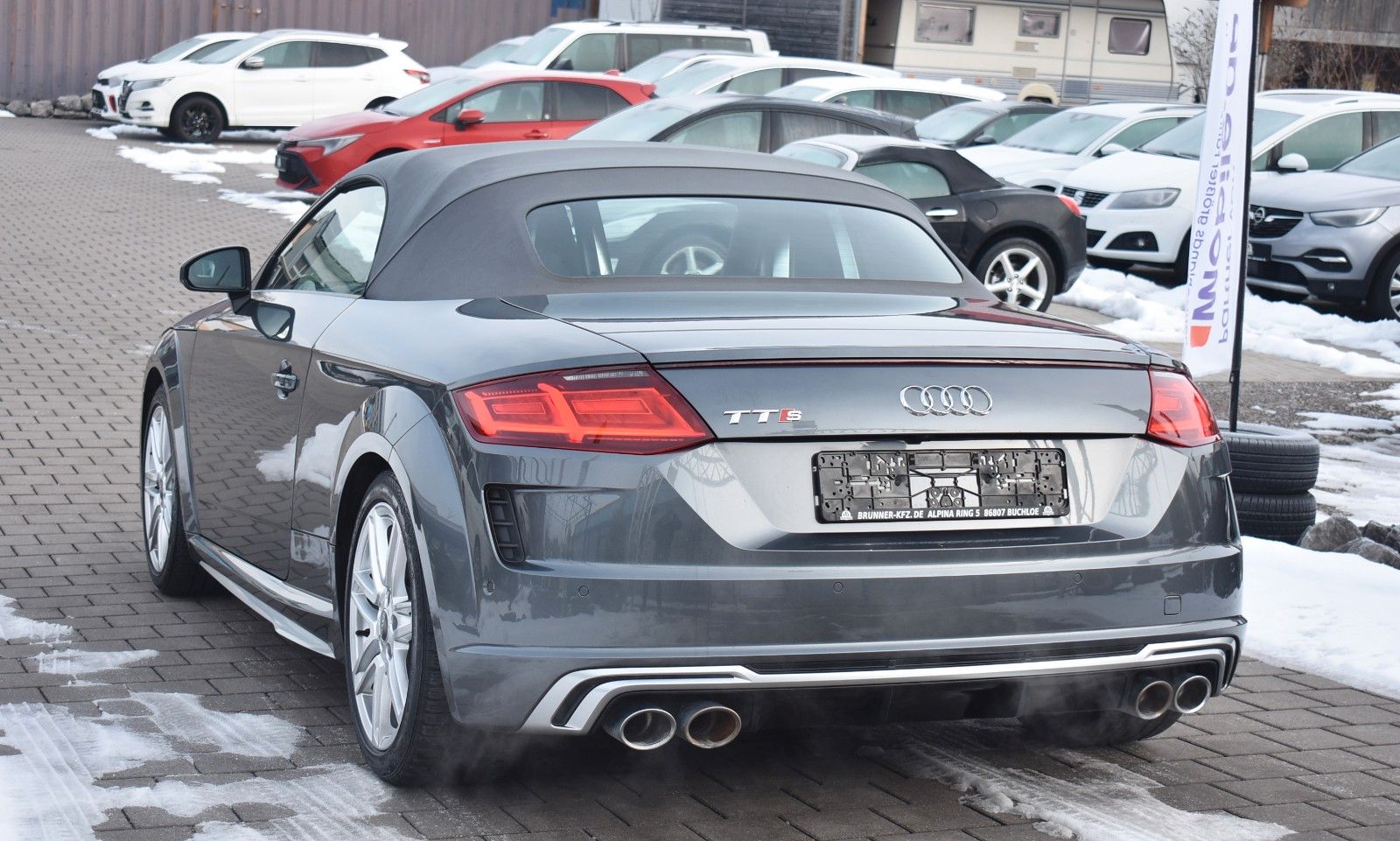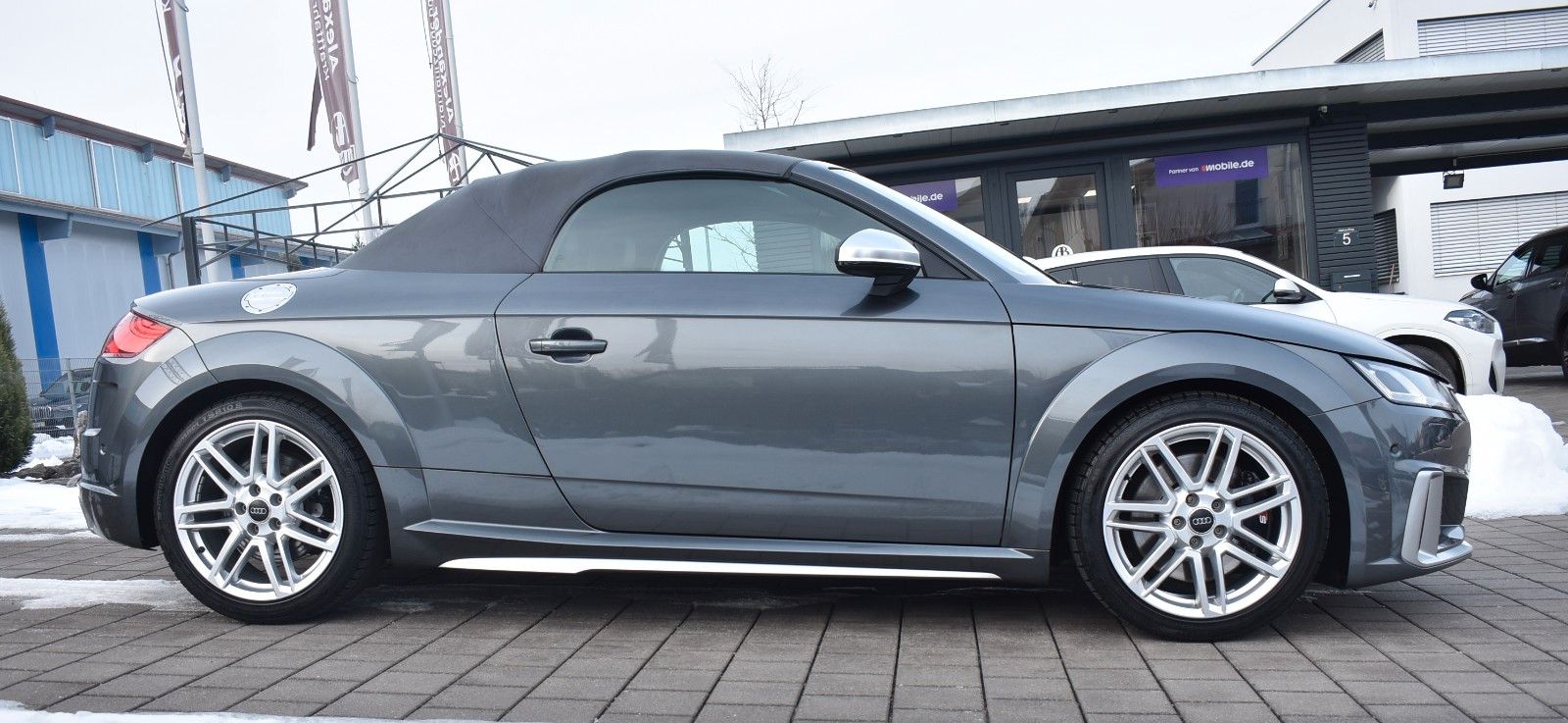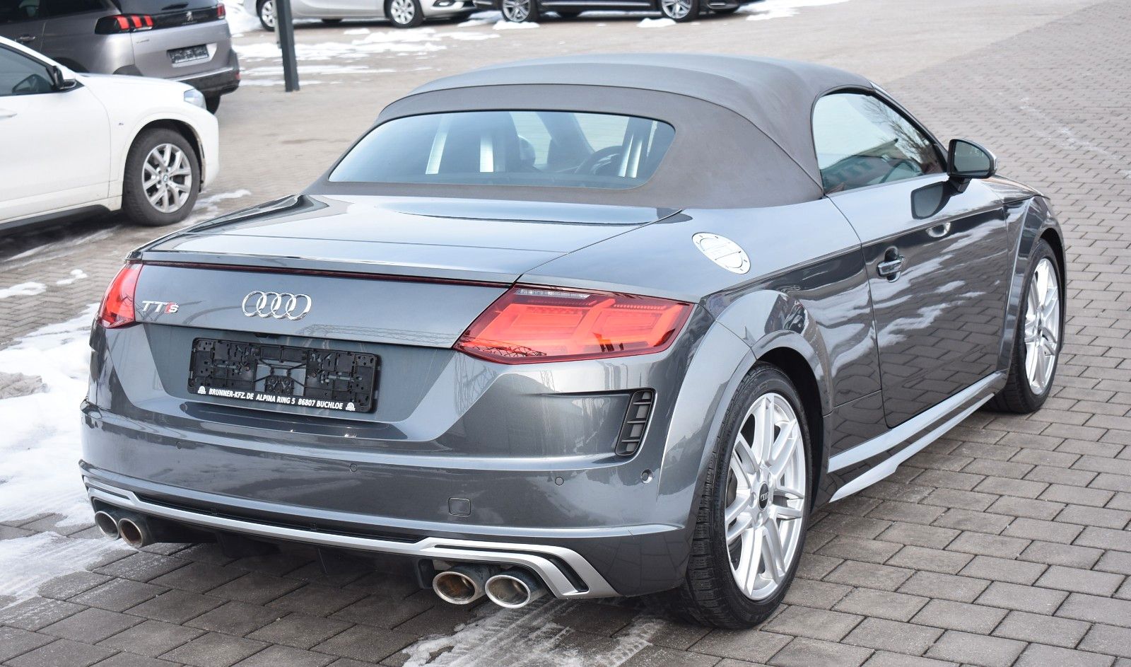 Lieber Interessent, wir bieten Ihnen hier einen gepflegten Audi TTS zum Kauf an. Es handelt sich selbstverständlich um ein deutsches unfallfreies Fahrzeug aus 2. Hand. Inspektionen wurden regelmäßig eingehalten. Ehrliches und schönes Fahrzeug. Auf den Bildern sehen Sie das Fahrzeug mit Winterreifen. Die Original TTS Felgen mit Sommerreifen haben wir natürlich dazu. Gerne erstellen wir Ihnen ein unverbindliches Finanzierungsangebot über unsere Partnerbank. Ihren Gebrauchten können Sie sorglos bei uns Inzahlung geben. Schöne Grüße aus Buchloe Alex & Robert. Sonderausstattung: Ablage- und Gepäckraum-Paket, Audi connect (Internetbasierende Dienste), Ausstattungs-Paket: Technology Selection, Außenspiegel elektr. verstell-, heiz- und anklappbar, mit Abblendautomatik und Bordsteinautomatik, Bluetooth-Freisprecheinrichtung mit Spracherkennung (Audi Phone Box), Fahrassistenz-System: Parklenkassistent mit selektiver Anzeige, Fahrassistenz-System: Spurwechselassistent (Side Assist), Fahrassistenz-System: Verkehrszeichenerkennung, Innenspiegel mit Abblendautomatik, Komfort-Klimaautomatik 2-Zonen, Kopfraumheizung, Leder-Paket erweitert, Licht-Paket, LM-Felgen 9x19 (5-Arm, Blade-Design, Titanoptik matt, glanzgedreht), Matrix-LED-Scheinwerfer, Perleffekt-Lackierung, Radioempfang digital (DAB), Rückfahrkamera, Sitze vorn elektr. verstellbar, Sound-System Bang & Olufsen