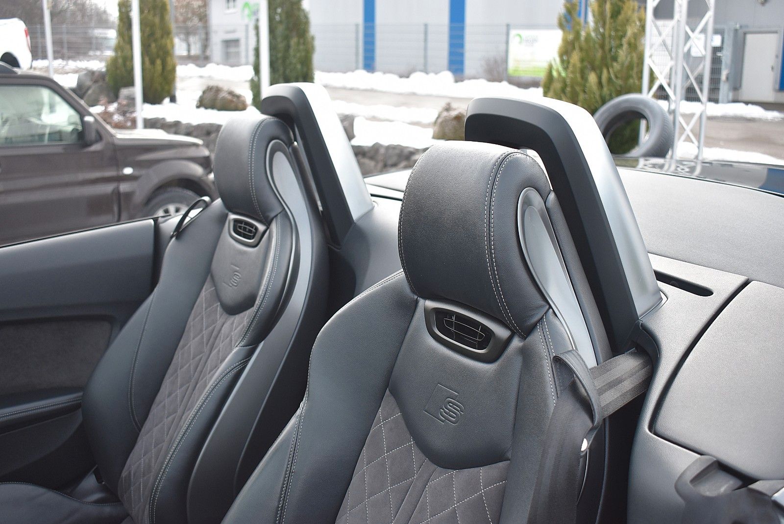 Weitere Ausstattung: Airbag Beifahrerseite abschaltbar, Airbag Fahrer-/Beifahrerseite, Akustik-Verdeck, Antriebs-Schlupfregelung (ASR) mit EDS, Audi Drive Select, Außenspiegel Aluminium / Chromfarben, Blinkleuchten LED in Außenspiegel integriert, Einstiegsleisten mit Aluminiumeinlage und Schriftzug, Fahrassistenz-System: Spurhalteassistent (active lane assist), Fahrwerk mit Dämpferregelung (Magnetic Ride), Fußgänger-Schutzsystem, Fußmatten Velours, Heckscheibe heizbar, Heckspoiler (elektrisch ausfahrbar), Innenausstattung: Dekoreinlagen Aluminium Matt, Innenausstattung: Erweiterte Aluminium-Optik, Innenausstattung: Interieurelemente farbig, Feinlack, Anthrazit, Isofix-Aufnahmen für Kindersitz an Beifahrersitz, Karosserie: 2-türig, Kombiinstrument digital (virtual cockpit plus), Kopf-Airbag-System (Sideguard), Lenkrad (Sport/Leder - 3-Speichen, unten abgeflacht) mit Multifunktion und Schaltfunktion, Motor 2,0 Ltr. - 225 kW 16V TFSI, Multi-Media-Interface MMI Basic / MMI Radio, Nichtraucher-Paket, Otto-Partikelfilter (OPF), Progressivlenkung, Reifen-Reparaturkit, Reifenkontroll-Anzeige, S Sportsitze vorn, Schadstoffarm nach Abgasnorm Euro 6d-TEMP, Scheibenwaschdüsen heizbar, Seitenairbag vorn, Sitzbezug / Polsterung: Alcantara / Leder mit Logo-Prägung in Vordersitzlehnen, Sitzheizung vorn, Start/Stop-Anlage, Tankdeckel Alu-Optik, Universal-Schnittstelle Bluetooth, Verdeckbetätigung vollautomatisch, Verdeckbezug Stoff Schwarz, Windschott elektr. versenkbar, Wärmeschutzverglasung grün getönt, Überrollbügel Alu-Optik Die Fahrzeugbeschreibung dient lediglich der allgemeinen Identifizierung des Fahrzeuges und stellt keine Gewährleistung im kaufrechtlichen Sinne dar. Die Angaben erheben nicht den Anspruch auf Vollständigkeit. Die gemachten Angaben und Beschreibungen sowie Bilder sind unverbindlich und dienen nicht als zugesicherte Eigenschaften. Der Verkäufer übernimmt keine Haftung bzw. Gewährleistung für Schreib- oder Datenübermittlungsfehler. Ausstattungen sind ggf. gesondert zu prüfen. Änderungen und Zwischenverkauf vorbehalten. Wir freuen uns auf Ihren Besuch! Ihr Team von Alexander Brunner Kraftfahrzeuge Buchloe e.K. Wir lieben Autos! brunner-kfz.de